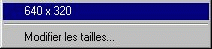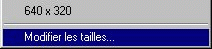 | - cliquer sur la taille de fenêtre, - sélectionner 640 x 320 (ou la taille souhaitée). |