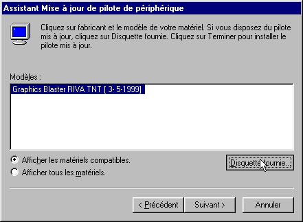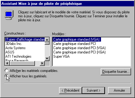 Pour l'installation d'un pilote de carte graphique AGP, il pourra être